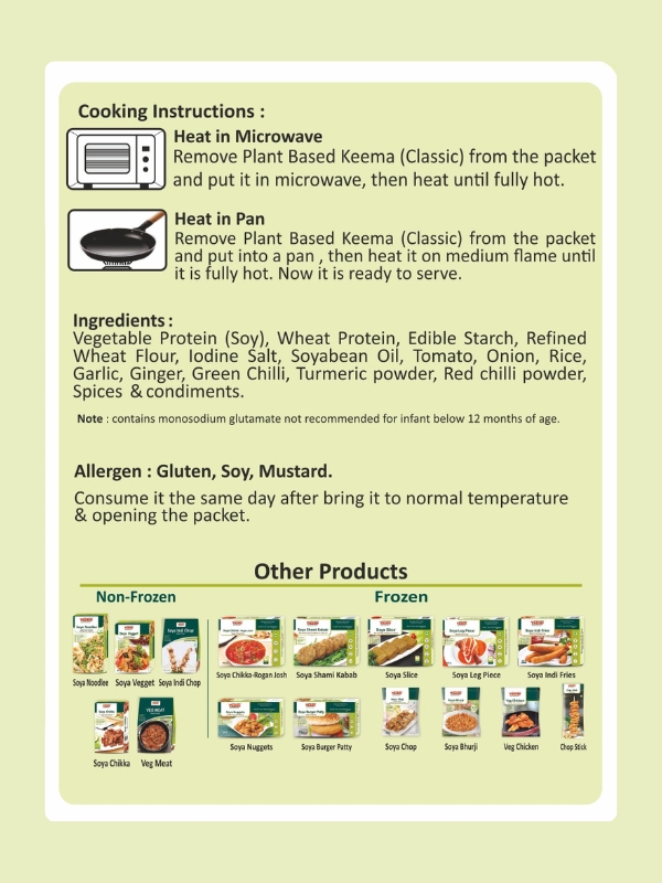 Vezlay Foods Discover the delicious twist of tradition wih our Plant-based Keema – a perfect spices and plant- powered protein. Juicy, Flavourful and incredibly versatile, this meat free keema is crafted to satisfy your cravings without compromising on health or taste. Whether you’re making keema pav Stuffed Parathas, Wraps or keema samosas.